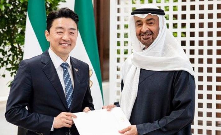 - 0رئيس الدولة يتسلم رسالة خطية من الرئيس الكوري خلال استقباله المبعوث الخاص
