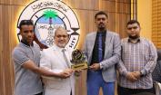 وفي ختام اللقاء قام الأخ العامري بتسليم رئيس الجامعة درع الوفاء؛ عرفانًا وتقديرًا لإسهاماته في إنجاح مهام المنتدى وأنشطته وبرامجه.