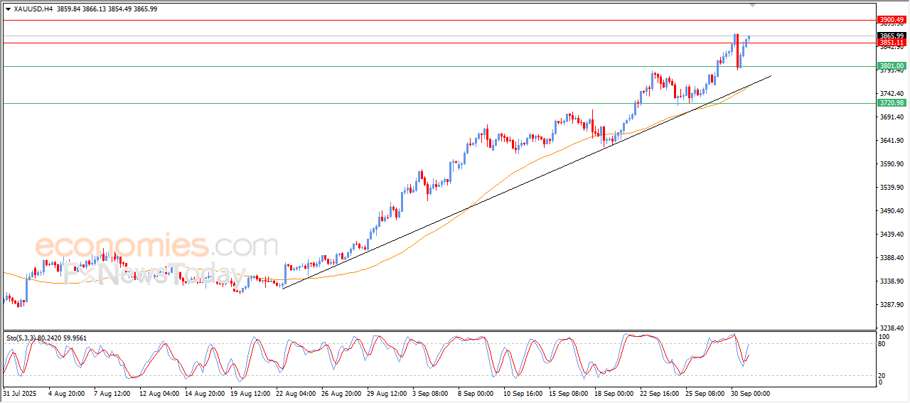 - سعر الذهب يستقر أعلى مستوى المقاومة 3,850$، مع استمرار الاتجاه الصاعد على المدى القصير.
