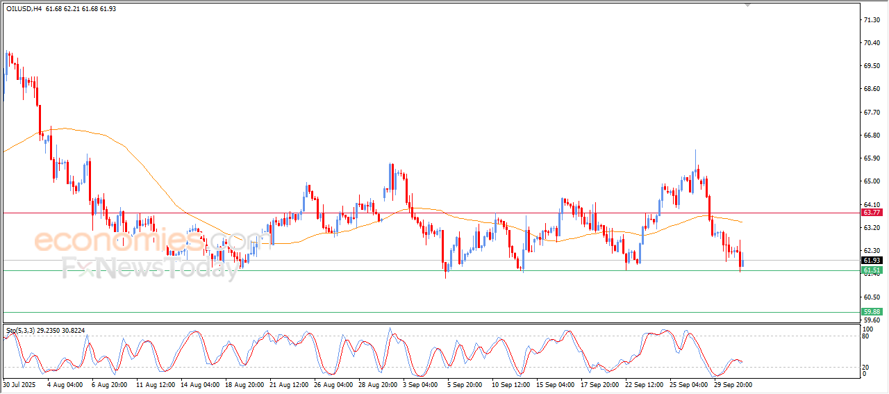 - توقع ارتفاع سعر النفط الخام بعد وصوله لمستوى الدعم المحوري عند 61.50$.