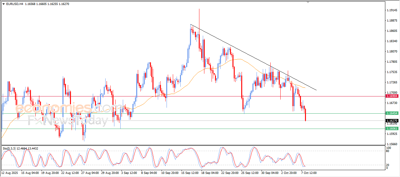 انزلق سعر اليورو مقابل الدولار الأمريكي (EURUSD) هبوطاً خلال تداولاته اللحظية الأخيرة، ليكسر مستوى الدعم المهم 1.1645، وهو المستوى الذي كان مستهدفاً سعرياً في تحليلاتنا السابقة، يأتي هذا التراجع في ظل استمرار سيطرة الاتجاه التصحيحي الهابط على المدى القصير، مع تداولات السعر بمحاذاة خط ميل داعم لهذا المسار، إلى جانب الضغط السلبي الناتج من بقائه دون متوسطه المتحرك البسيط لفترة 50.