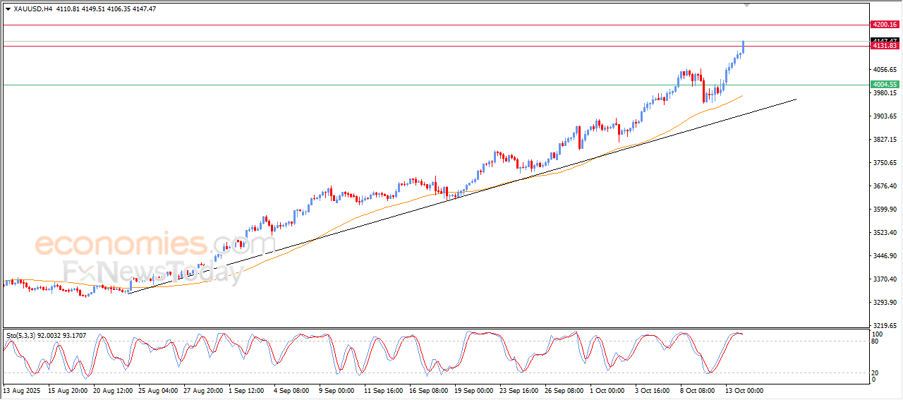 واصل سعر الذهب (GOLD) ارتفاعه خلال تداولاته اللحظية الأخيرة، مسجلاً مستويات قياسية جديدة مع كل موجة صعود، ليصل إلى مستوى المقاومة 4,130$، وهو المستوى الذي كان يمثل هدفاً متوقعاً في تحليلاتنا السابقة.