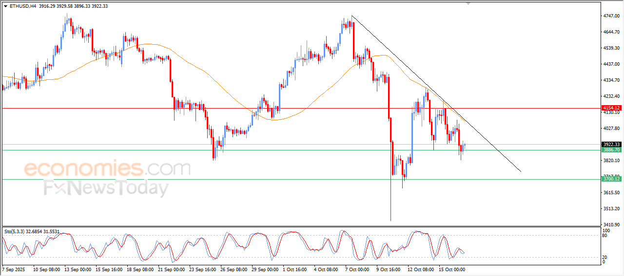 تقدم سعر الإيثيريوم (ETHUSD) بتداولاته الأخيرة على المدى اللحظي، وذلك على اثر ثبات مستوى الدعم 3,885$، هذا الدعم الذي كان مستهدفاً سعرياً لنا بتحليلاتنا السابقة، ما أكسبه بعضاً من الزخم الإيجابي الذي ساعده على تحقيق تلك المكاسب، والتي يهدف من خلالها تعويض البعض مما تكبده من خسائر سابقة، في ظل استمرار الضغط السلبي نتيجة تداولاته دون متوسطه المتحرك البسيط لفترة 50، وتحت سيطرة الاتجاه الرئيسي الهابط على المدى القصير وتداولاته بمحاذاة خط ميل، كما نلاحظ توارد الإشارات السلبية بمؤشرات القوة النسبية، بعدما نجح السعر بتحركاته السابقة في تصريف تشبعه البيعي بها، ما يمنحه مساحة أوسع لتسجيل المزيد من الخسائر على المدى القريب.