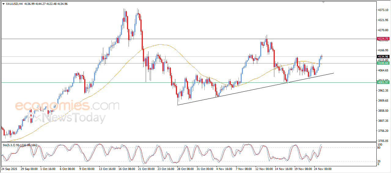 وتترافق تلك التحركات مع توارد إشارات إيجابية من مؤشرات القوة النسبية، رغم وصولها إلى مناطق تشبع شرائي مفرط، ما قد يحد من وتيرة الصعود اللحظي دون أن يلغي الزخم الإيجابي العام، ويظل الحفاظ على هذا الاختراق فوق 4,100$ عاملاً محورياً في دعم فرص امتداد الموجة الصاعدة خلال الفترة القريبة.