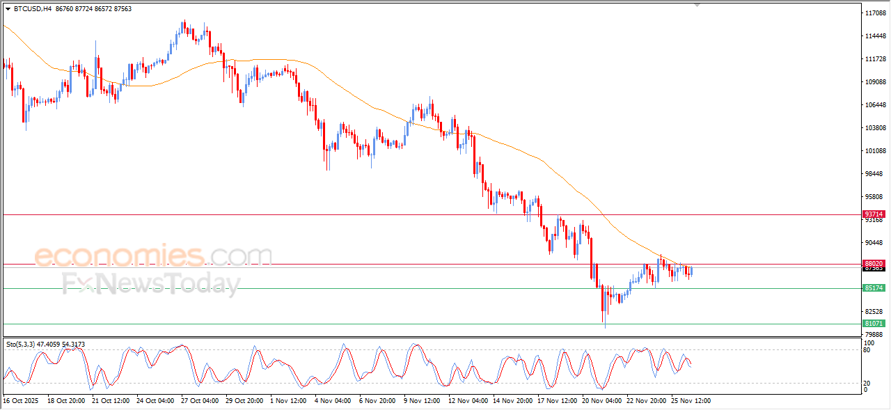 اتسمت تداولات سعر البتكوين (BTCUSD) بالتذبذب على مستوياته اللحظية الأخيرة، وسط سيطرة موجة تصحيحية صاعدة على المدى اللحظي، ليحاول اكتساب الزخم الإيجابي الذي قد يساعده في اختراق مستوى المقاومة المحوري 88,000$، والذي يتزامن مع تخلصه من الضغط السلبي للمتوسط المتحرك البسيط لفترة 50، ولكن في المقابل نلاحظ توارد الإشارات السلبية من مؤشرات القوة النسبية، ليستقر السعر بمنطقة تداولات محيرة يبحث خلالها عن اتجاهه القادم.