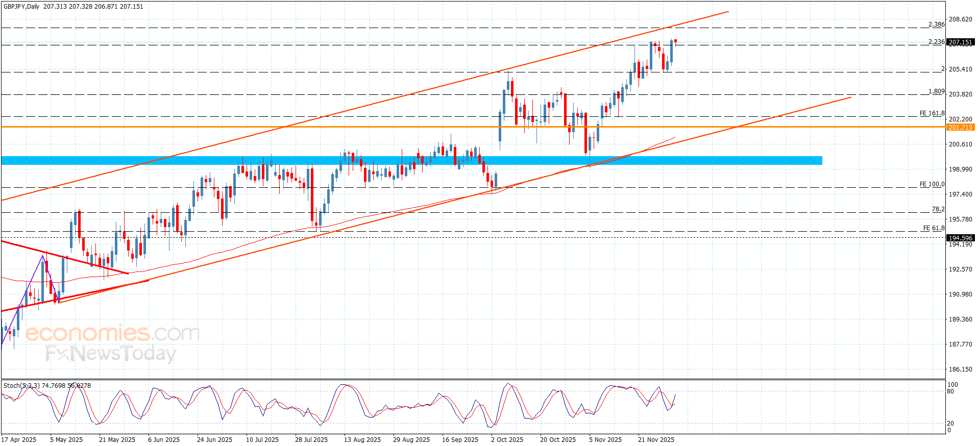نطاق التداول المتوقع لهذا اليوم ما بين 206.75 و 208.20