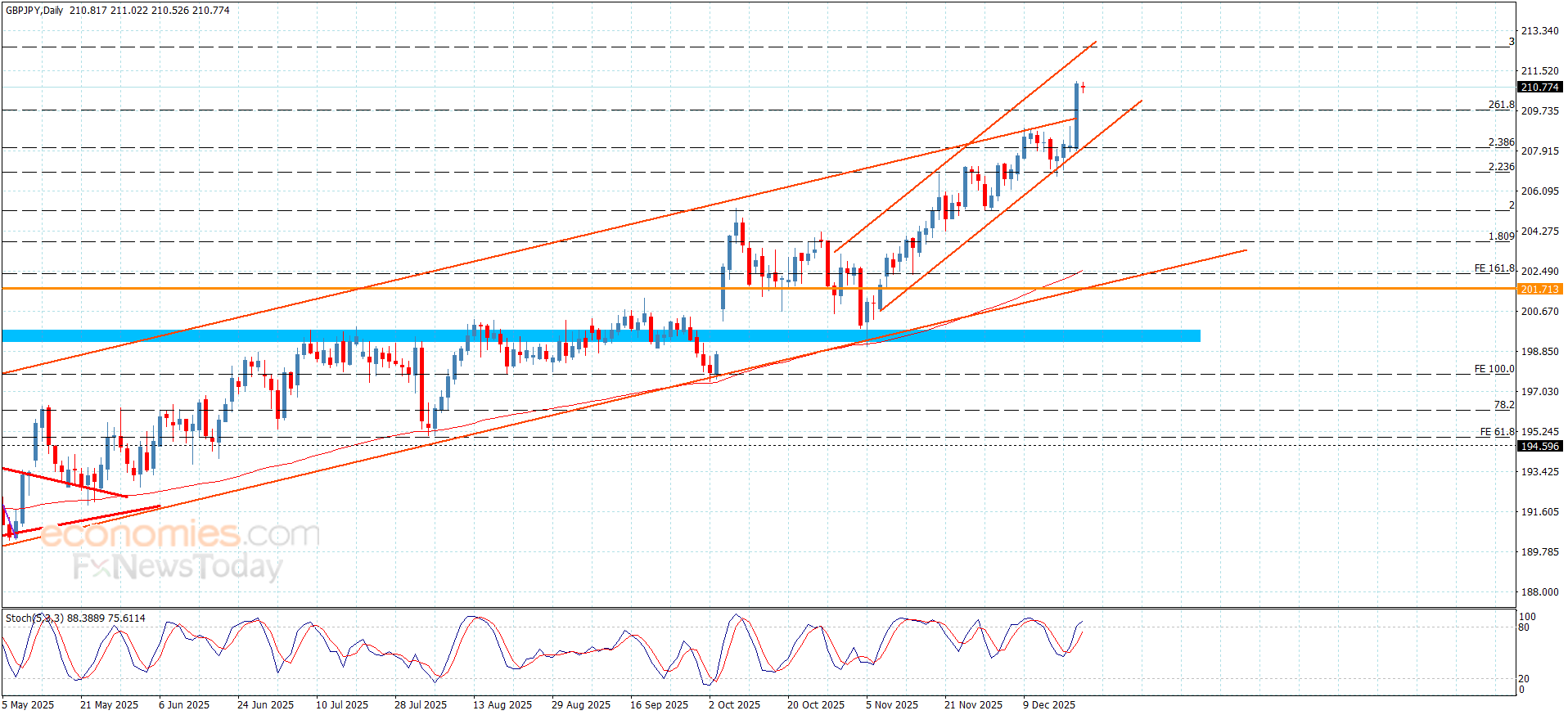 نطاق التداول المتوقع لهذا اليوم ما بين 210.00 و 211.60