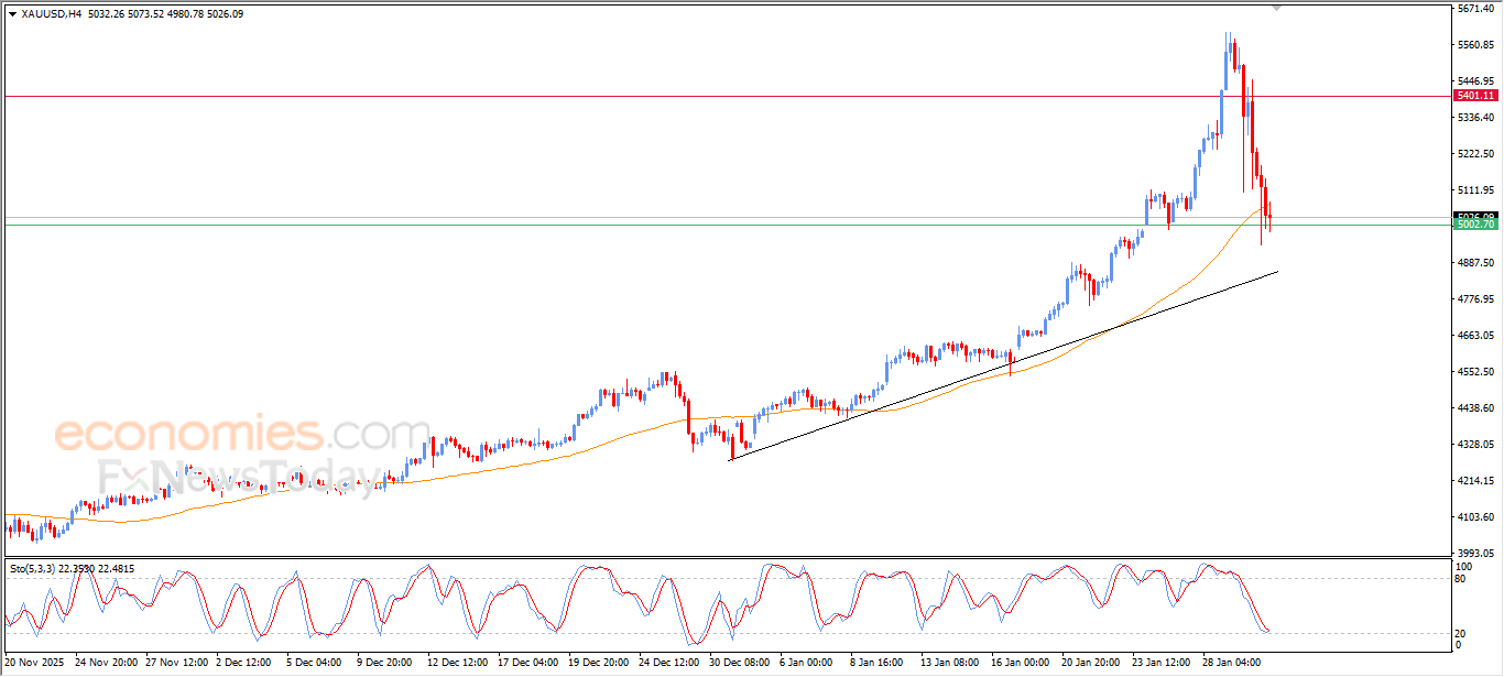 واصل سعر الذهب (GOLD) الهبوط خلال تداولاته اللحظية الأخيرة، وسط توارد الإشارات السلبية من مؤشرات القوة النسبية، بالرغم من وصولها لمناطق شديدة التشبع بعمليات البيع، وسط محاولاته البحث عن قاع صاعد يتخذ منه قاعدة قد تساعده على اكتساب الزخم الإيجابي اللازم لاستعادة تعافيه، ليرتكز بانخفاضه الأخير إلى مستوى الدعم الرئيسي 5,000$، ولكنه خلال ذلك تخطي دعم متوسطه المتحرك البسيط لفترة 50، ما قد يعرضه للضغط السلبي على تحركاته المقبلة.