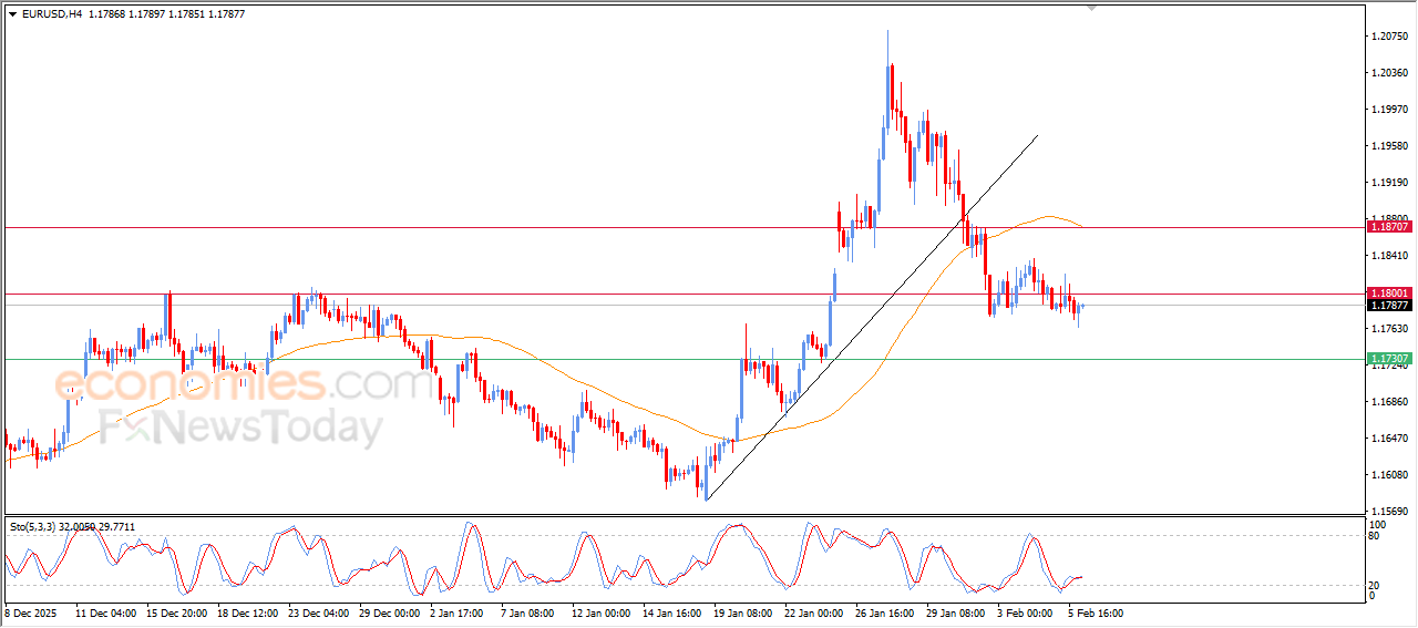 يشهد زوج اليورو مقابل الدولار الأمريكي (EURUSD) تداولات متذبذبة تميل إلى السلبية خلال مستوياته اللحظية الأخيرة، في ظل استقراره دون مستوى المقاومة 1.1800، ما يعكس استمرار الضغوط البيعية على حركة الزوج، ويأتي هذا الأداء الضعيف مع بقاء التداولات دون متوسطه المتحرك البسيط لفترة 50، والذي يشكل مقاومة ديناميكية تحد من أي محاولات ارتداد قوية، بالتزامن مع سيطرة موجة تصحيحية هابطة على المدى القصير.