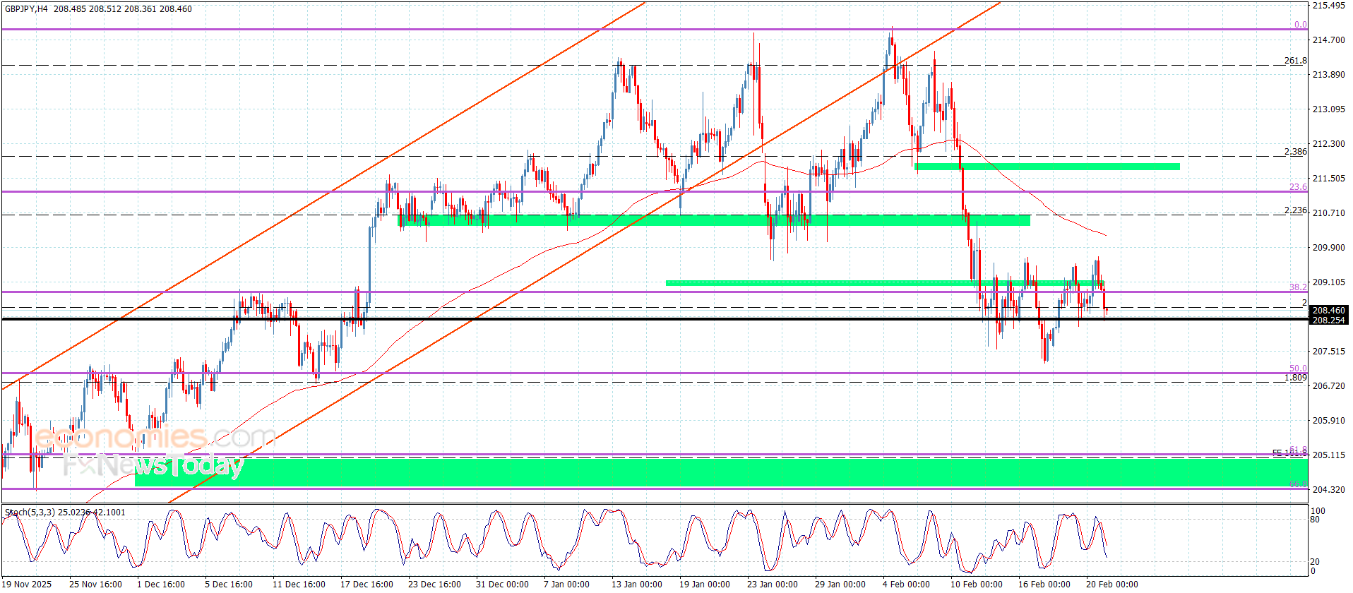 نطاق التداول المتوقع لهذا اليوم ما بين 208.20. و 209.15