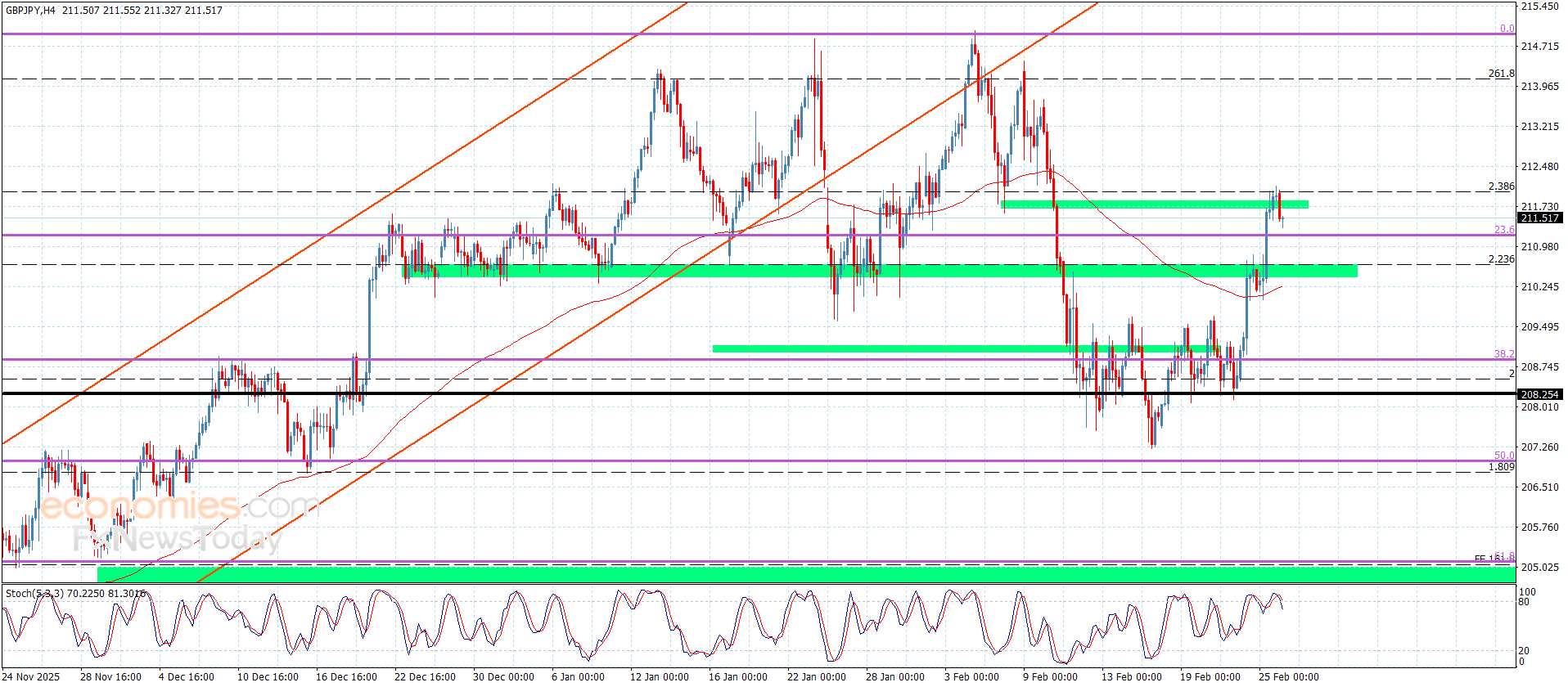 نطاق التداول المتوقع لهذا اليوم ما بين 210.65 و 212.85