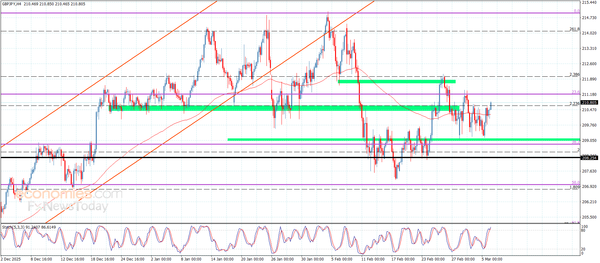 نطاق التداول المتوقع لهذا اليوم ما بين 210.00 و 211.40