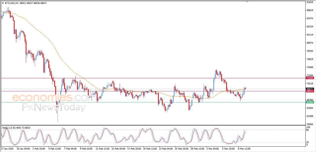 يستقر سعر البتكوين (BTCUSD) على مكاسب قوية خلال مستوياته اللحظية الأخيرة، لينجح السعر في اختراق مستوى المقاومة 68,000$، مدفوعاً بتوارد الإشارات الإيجابية من مؤشرات القوة النسبية، ليحاول السعر بارتفاعه الأخير في التخلص من الضغط السلبي للمتوسط المتحرك البسيط لفترة 50، ليعلن بعدها تعافيه بشكل كامل وليضاعف من فرص تمديد مكاسبه على المدى القريب.