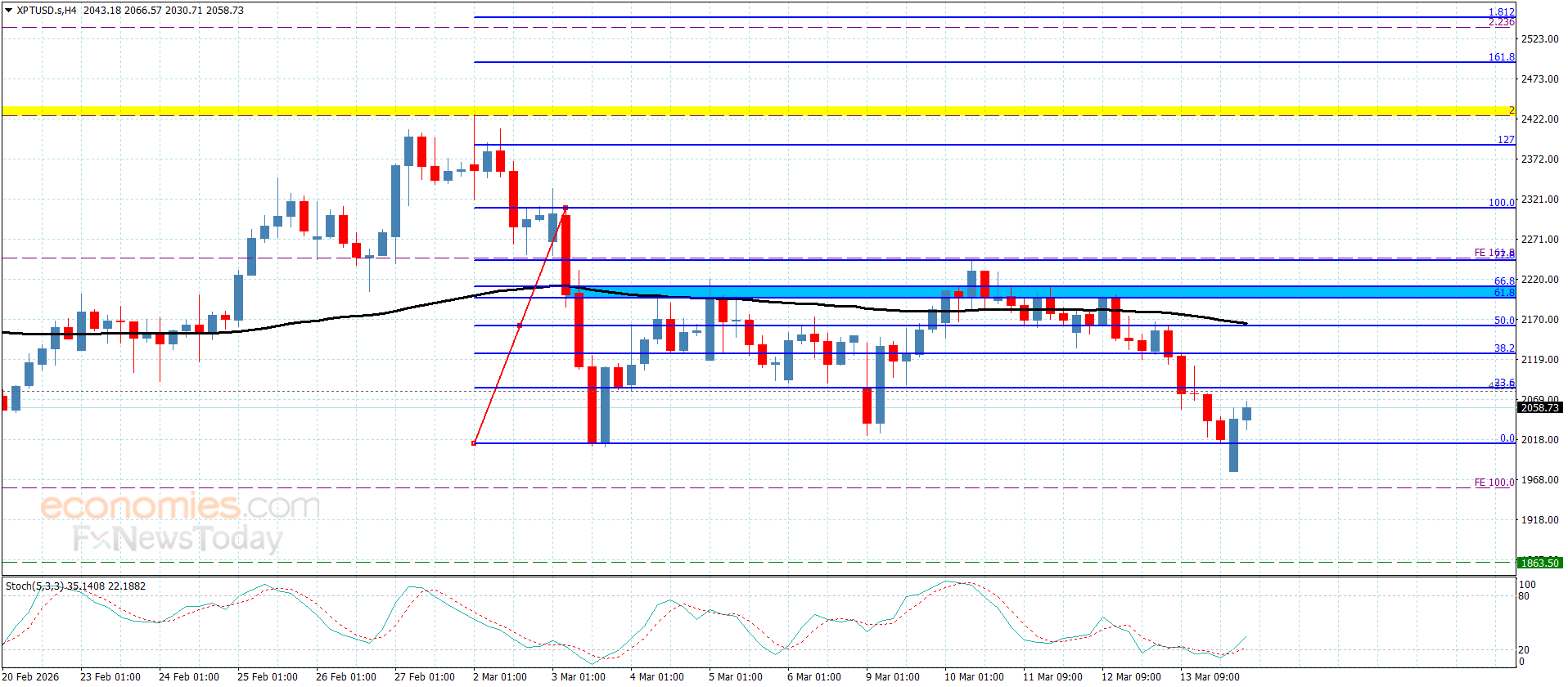تجاوز سعر البلاتين للأهداف السلبية المقترحة سابقا بملامسته بتداولات هذا الصباح لمستوى 1978.00$ ومن ثم ليحاول التقاط أنفاسه باندفاعه نحو 2060.00$ معوضا بذلك لبعض الخسائر.