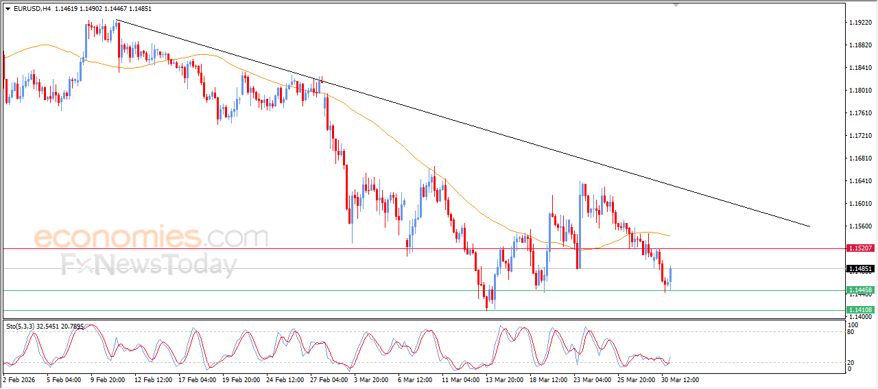 قفز سعر اليورو مقابل الدولار الأمريكي (EURUSD) خلال التداولات اللحظية الأخيرة، مستمداً زخمه من صمود مستوى الدعم 1.1445 الذي أشرنا إليه في تحليلاتنا السابقة كهدف سعري محتمل، مما منحه دفعة إيجابية ساعدته على تعويض جزء من خسائره السابقة، فيما تبدأ مؤشرات القوة النسبية في تفريغ تشبعها البيعي مع توارد أولى إشاراتها الإيجابية.