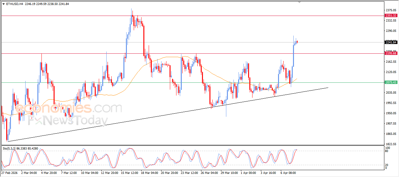 يستقر سعر الإيثيريوم (ETHUSD) على مكاسب قوية خلال تداولاته اللحظية الأخيرة، متأثراً باختراقه لمستوى المقاومة المهم 2,195$، وسط سيطرة الاتجاه الرئيسي الصاعد على المدى القصير، مع استمرار الضغط الديناميكي المتمثل في تداولاته اعلى متوسطه المتحرك البسيط لفترة 50، ما يعزز من فرص تمديد مكاسبه في الفترة القريبة المقبلة، ولكن قد يجد السعر بعض المعوقات نظراً لحاجته إلى تصريف البعض من تشبعه الشرائي بمؤشرات القوة النسبية، خاصة مع بدء ظهور تقاطع سلبي بها.
