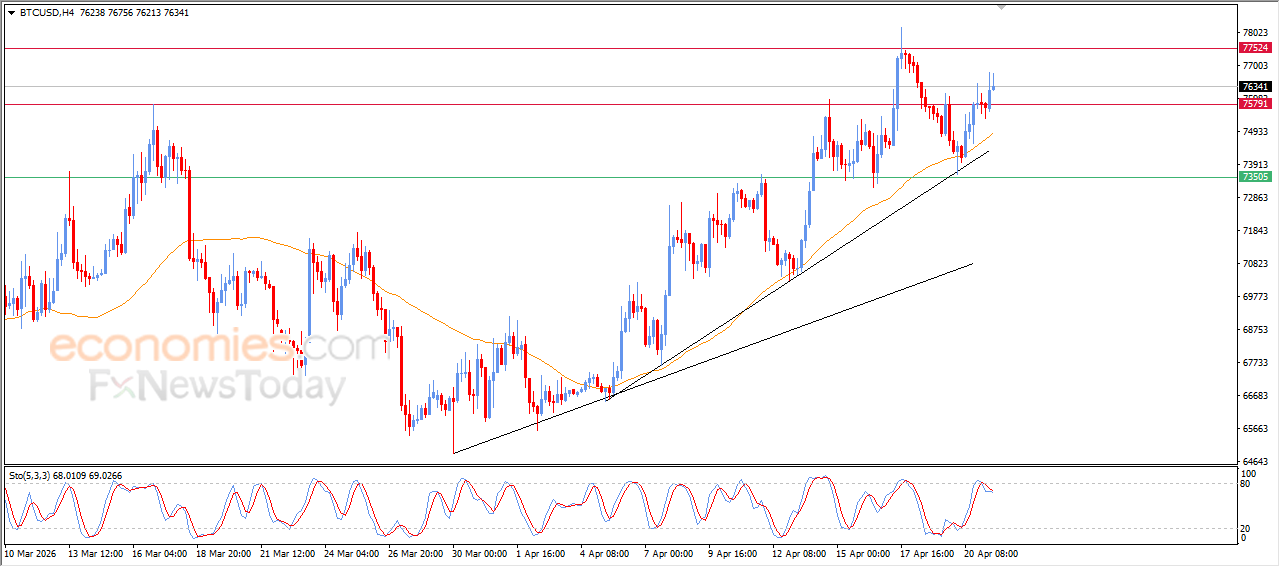 ارتفع سعر البتكوين (BTCUSD) خلال تداولاته اللحظية الأخيرة، لينجح السعر في اختراق مستوى المقاومة 75,800$، مستفيداً من الدعم الديناميكي المتمثل في تداولاته أعلى متوسطه المتحرك البسيط لفترة 50، مع سيطرة الاتجاه الرئيسي الصاعد على المدى القصير، مع تحركاته بمحاذاة خطوط ميل رئيسية وفرعية داعمة لهذا المسار، ولكن في المقابل من ذلك نلاحظ توارد الإشارات السلبية من مؤشرات القوة النسبية، بعد وصولها لمناطق شديدة التشبع بعمليات الشراء، ليحاول السعر بذلك تصريف البعض من هذا التشبع الشرائي، وهو ما كبح من مكاسب السعر الأخيرة.