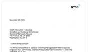 قدّمت NYSE Arca، التابعة لبورصة نيويورك، ملفاً إلى لجنة الأوراق المالية والبورصات الأمريكية (SEC) يوم الجمعة لتأكيد “موافقتها على الإدراج والتسجيل” لكلٍّ من صندوق Grayscale XRP Trust ETF المُرمز (GXRP) وصندوق Grayscale Dogecoin Trust ETF المُرمز (GDOG).