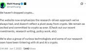 وفي عام 2023، لاحظ مراقبون أن الشركة أزالت إشارات صريحة إلى Web3 والعملات المشفرة من موقعها الإلكتروني، ما دفع بعض المتابعين إلى التكهن بأنها تتحول بالفعل من التشفير إلى الذكاء الاصطناعي.