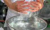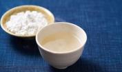 طقوس نثر البذور ”تانيماكي إيواي“. صورةٌ ليد رجلٍ تمسك بحفنة من الأرز غير المقشر تظهر من خلفية سوداء، مما يوحي بأن اليد تطفو. محافظة آيتشي، 1956. (© هاغا هيدييو)