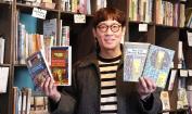 أجريت المقابلة في متجر الكتب ”نيكو نو هوندانا“ في جينبوتشو بطوكيو (أعلى)، حيث يمكن للناس استئجار رفوف لتكون بمثابة ”متاجر“ صغيرة خاصة بهم يبيعون عليها الكتب التي يختارونها. يضم رف ياغيساوا الخاص به (أسفل) ترجمات لكتبه بلغات متعددة (© هاناي توموكو).