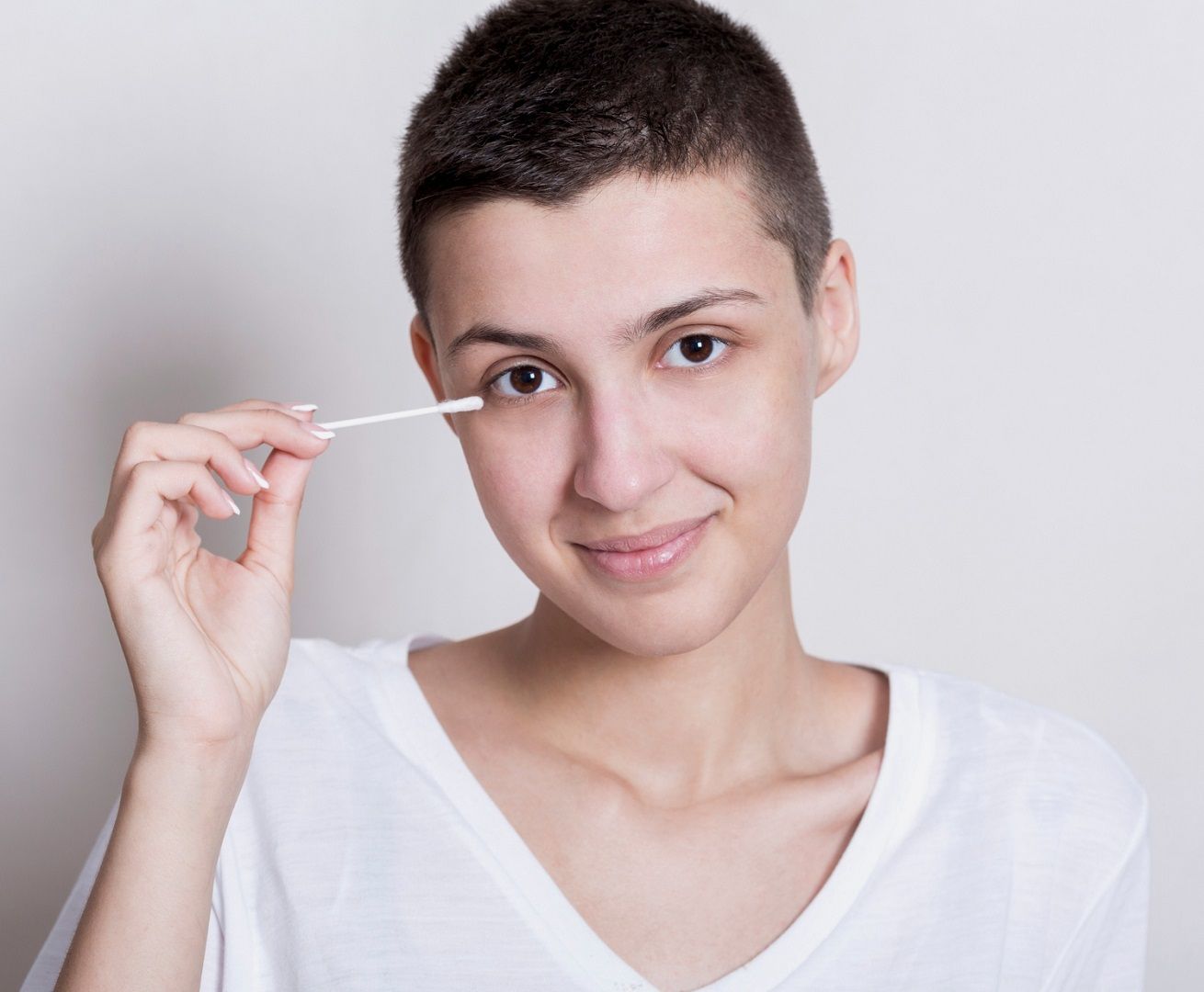 - استخدمي أعواداً قطنية صغيرة لإزالة بقايا الكحل أو الماسكرا بين الرموش.