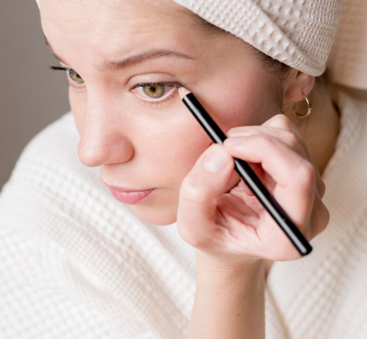 تجنبي الكحل الأسود داخل العين لأنه يقلص مساحتها ويجعلها تبدو مغلقة. بدلًا من ذلك، استخدمي قلم كحل بلون نيود أو أبيض على خط الماء السفلي. هذه الحيلة البسيطة تفتح العين في ثوان وتمنحها إشراقة صحية تشبه نظرة الصباح المشرقة.