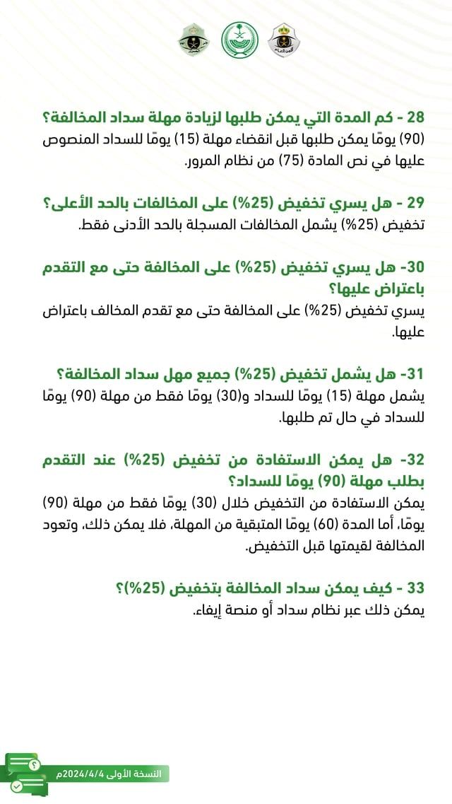 33 – كيف يمكن سداد المخالفة بتخفيض (25%)؟