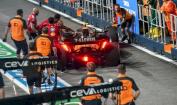 ولاحقا، خرج نوريس ولوكلير بشكل شبه متزامن من مرآبيهما، وهو ما تسبّب في اصطدام سائق فيراري بالبريطاني ودفعه نحو الجدار، ليؤدي ذلك إلى كسر جناحه الأمامي.