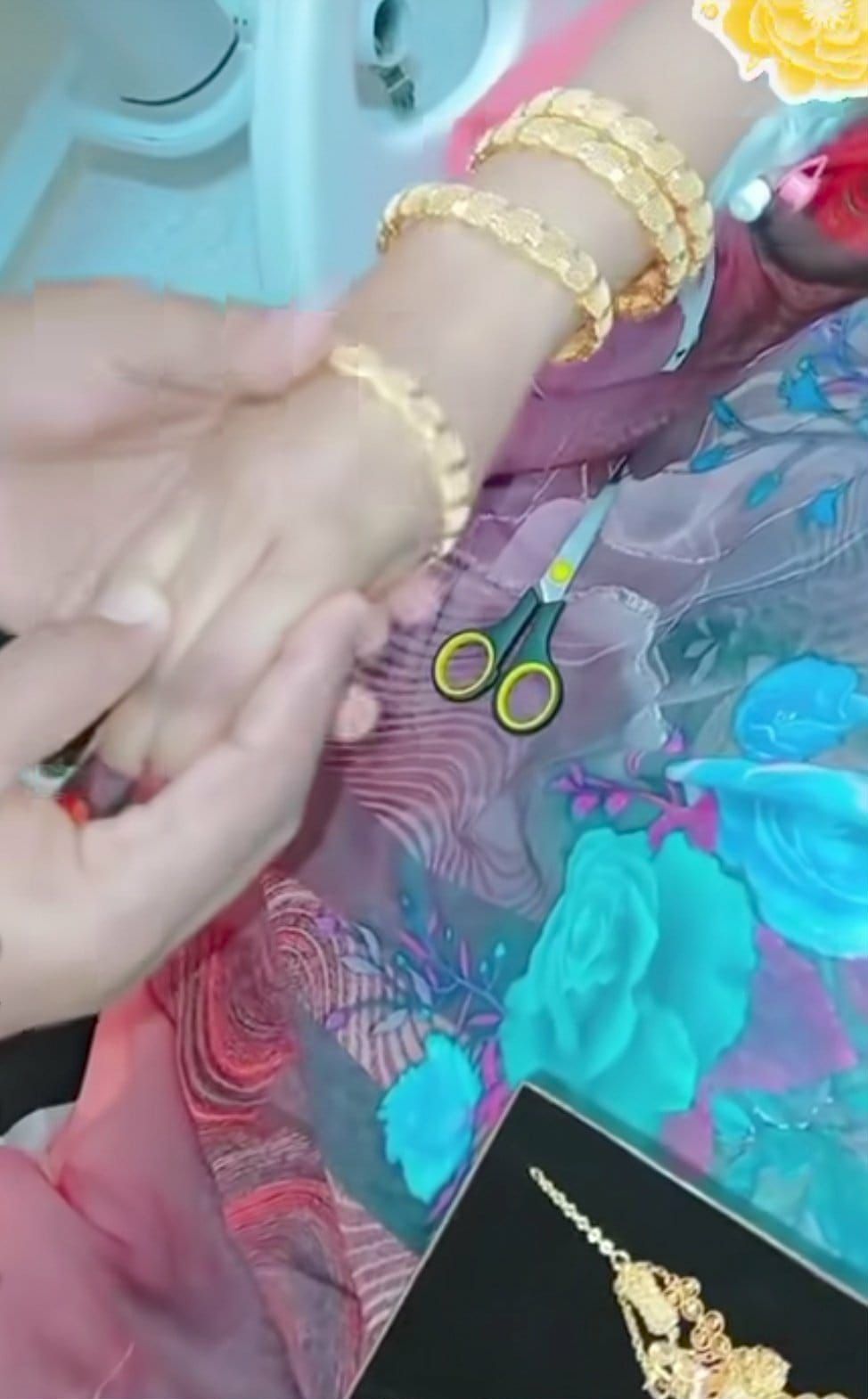 الرجل ظهر وهو يغمر يد زوجته بغوائش ومجوهرات من الذهب الخالص, وهو ما أثار إعجاب الجنس اللطيف على السوشيال ميديا.