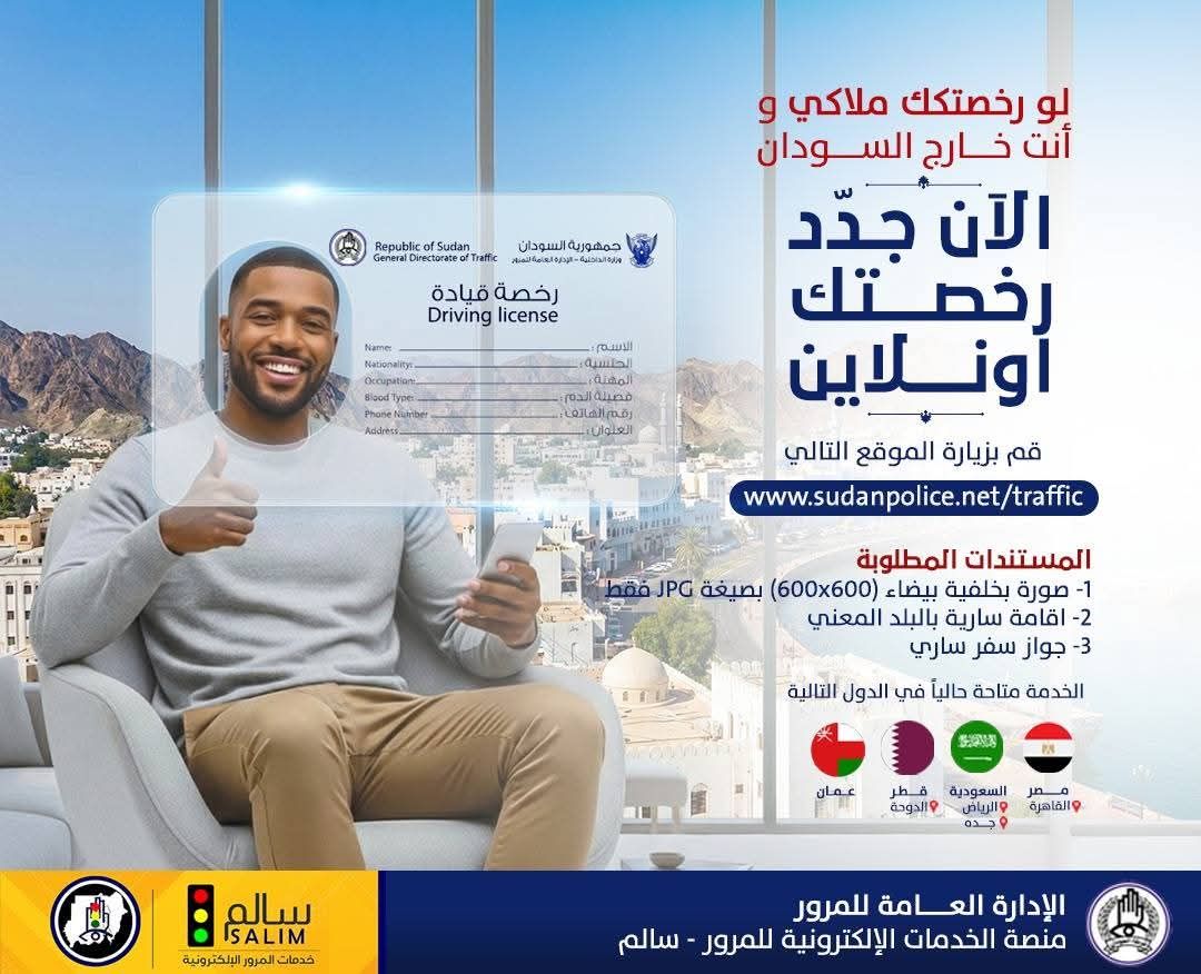 أوضح اللواء شرطة حقوقي حاتم محمود منصور مدير الإدارة العامة للمرور أن المقدمين لإجراء المعاملات المرورية لتجديد رخص القيادة الملاكي أونلاين عبر منصة سالم الإلكترونية بلغ عددهم (5451) طلب معاملة تم قبول (1300) إجراء وإستخراج عدد (258) رخصة قيادة للسودانيين المقيمين بالخارج عبر المنصة، مشيراً الي اكتمال المرحلة الأولى من إنتاج رخص القيادة عبر نظام سالم الإلكتروني خلال فترة وجيزة استغرقت عشرة أيام في خطوة تعكس جاهزية المنظومة الرقمية وقدرتها على تسريع إجراءات الترخيص وفتح المجال قريبا لتدشين خدمات إلكترونية جديدة تسهّل المعاملات داخل السودان وخارجه.