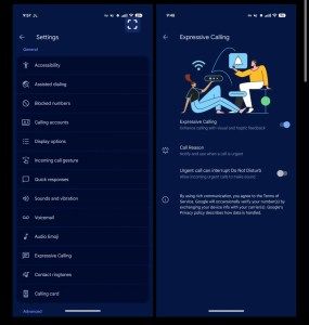 للتحقق من توفر الميزة على هاتفك، انتقل إلى إعدادات تطبيق الهاتف ثم إلى عام، وبعدها Expressive Calling الموجودة قرب أسفل القائمة.